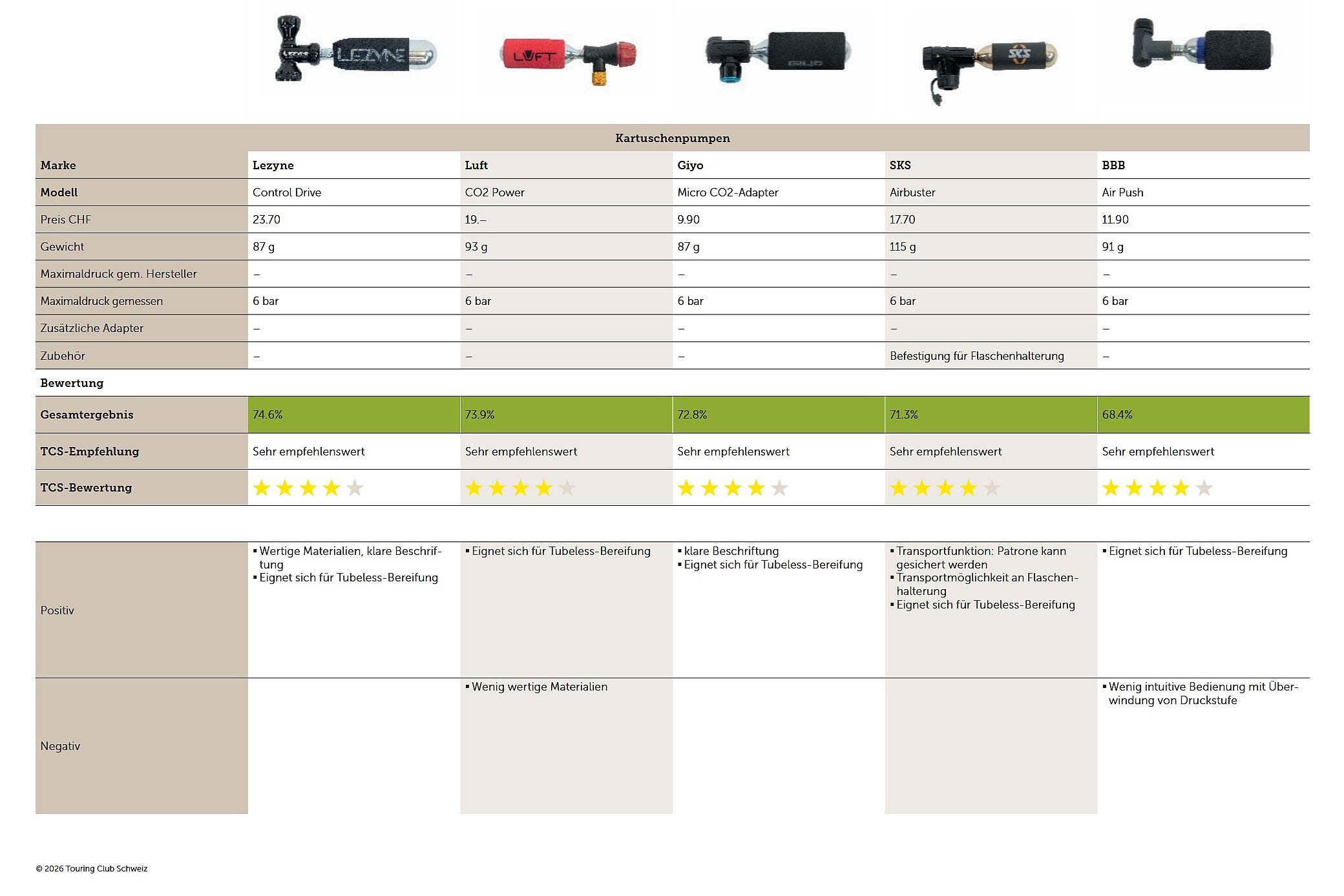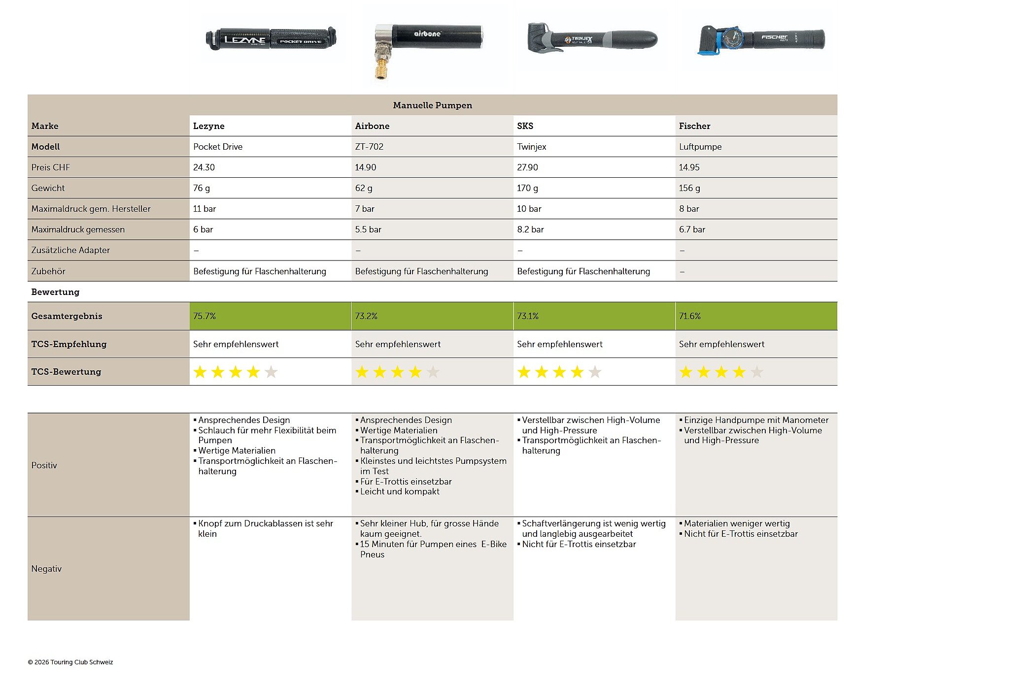 Komfort, Gewicht und Einsatzbereich dieser Produkte unterscheiden sich deutlich. Zusammen mit dem TCS hat Velojournal alle drei Pumpenarten getestet. Dabei wurden pro Produktkategorie jeweils vier bis fünf repräsentative, schweizweit viel verkaufte Modelle unter 150 Franken verglichen. Der Test zeigt Stärken, Schwächen und Einsatzgebiete für jeden Typ auf.