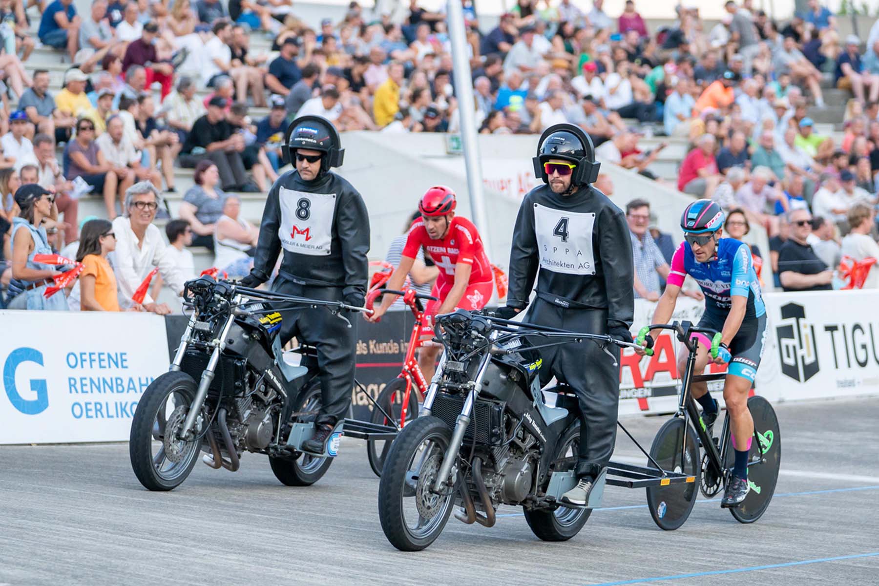Zum Start setzt die Interessengemeinschaft Offene Rennbahn Oerlikon (Igor) als Organisatorin der Rennen bereits ein lautes Ausrufezeichen. Die Steher machen den Saisonauftakt und jagen mit bis zu 80 km/h der Hinterradrolle ihrer Schrittmachenden auf den knatternden Motorrädern hinterher.
