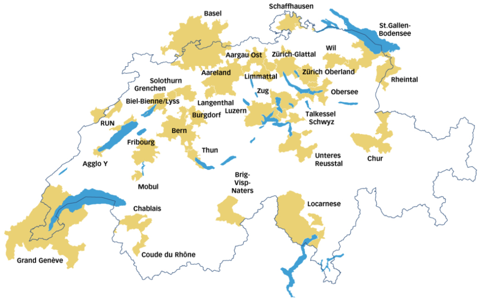 In diesem Gebieten laufen Agglomerationsprogramme in der 4. Generation. (Bild: Bundesamt für Raumentwicklung ARE)
