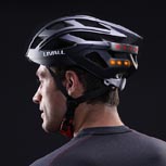 So werden drei smarte Velohelm-Modelle von Livall ab Mitte September ab Lager lieferbar: Der aerodynamisch optimierte Rennrad-Helm «BH62», das Allround-Modell «BH60» und das mit einem Visier ausgestattete Mountainbike-Modell «MT1». Auf Ende 2017 folgt mit dem «BH51» ein weiteres, neues Modell, das mit seinem markanten, flächigen Design für E-Biker und Alltagsradler gedacht ist. Was genau macht diese Helme smart? Erstens weisen sie an ihrer Rückseite acht in die Helmschale integrierte LEDs auf. Diese dienen als Rücklicht sowie auf Knopfdruck am Lenker als Blinker. Beschleunigungsmesser sorgen dafür, dass bei einem Unfall automatisch ein Notruf mit GPS-Koordinaten abgesetzt wird, und die Kopplung des Helms mit dem Smartphone per Bluetooth eröffnet in Kombination mit Mikrophon und Lautsprechern weitere Möglichkeiten - etwa Anrufe zu tätigen, Navigations-Anweisungen zu erhalten oder einfach nur Musik zu hören. Zudem können zwei Velofahrer mit Hilfe von Livall-Helmen auch ohne Telephon drahtlos miteinander kommunizieren.