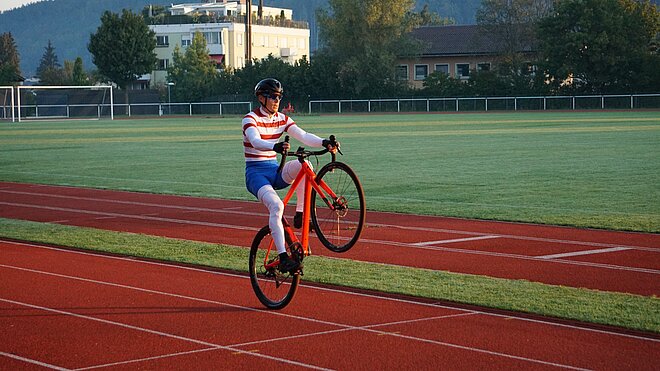 Beim Wheelie-Stundenweltrekord müssen in einer Stunde so viele Kilometer wie möglich auf dem Hinterrad zurückgelegt werden. Dabei darf das Vorderrad den Boden nicht berühren, sonst wird der Versuch abgebrochen. Auf einer 400-Meter Leichtathletikbahn in Gümligen hat Manuel Scheidegger letzten Samstag mit 30.95 km einen neuen Rekord aufgestellt. Die bisherige Bestmarke von 25.86 km wurde damit klar geknackt.