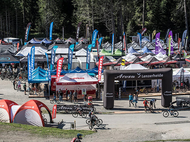 Mit dieser Massnahme wollen die Testride-Organisatoren das Tracing möglicher Ansteckungen ermöglichen. Zudem gilt auf dem Eventgelände sowie beim Anstehen und der Fahrt mit der Rothorn-Gondelbahn eine Tragepflicht für Nasen-Mund-Schutzmasken.