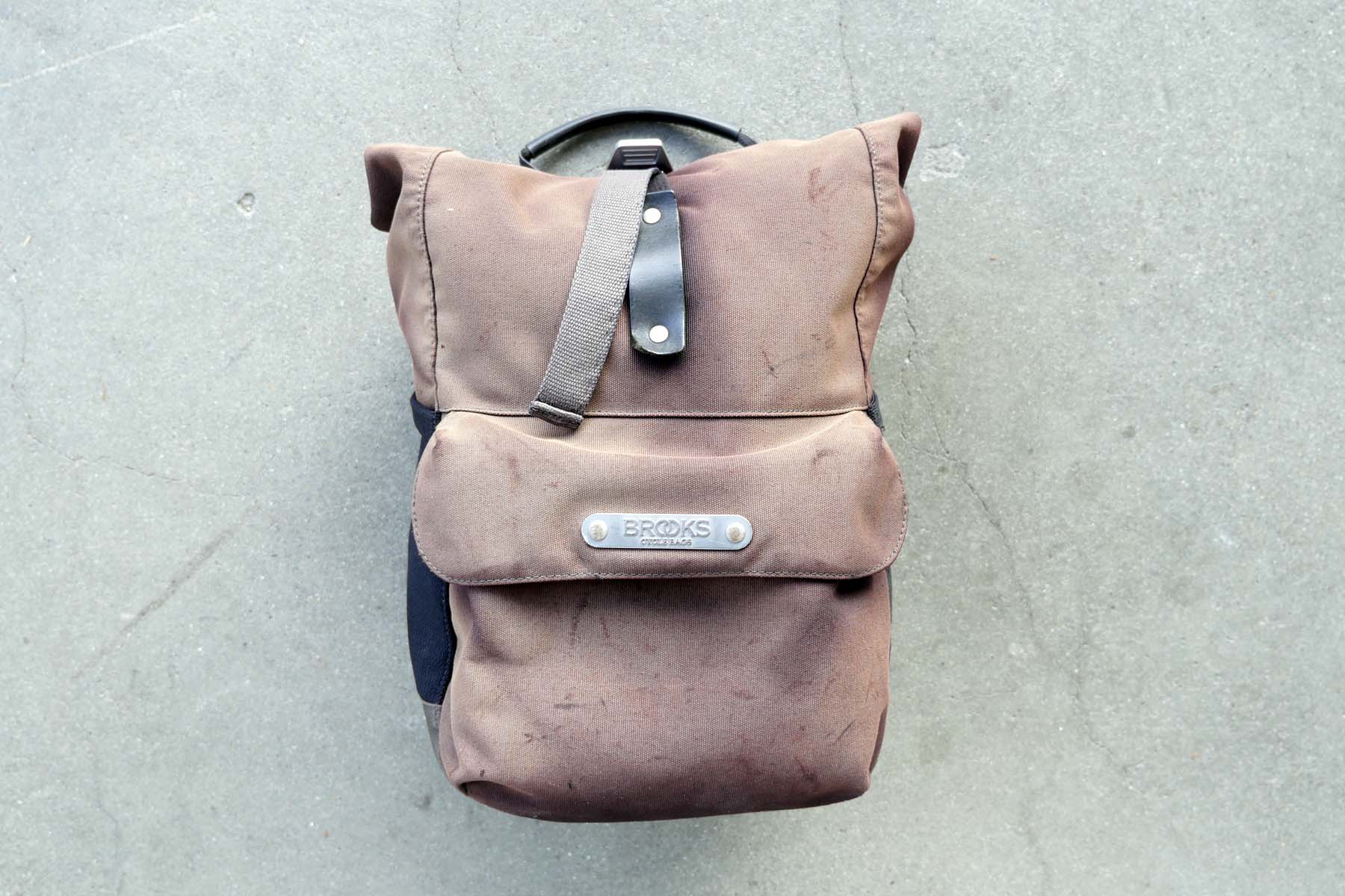 In der Aussentasche hat es Platz für das Schloss, in die elastischen Netztaschen können Handschuhe oder eine Getränkeflasche gestopft werden. Brooks verwendet für die «Norfolk»-Tasche das patente Hakensystem von Ortlieb. Dieses lässt sich schnell an unterschiedliche Gepäckträger anpassen und hält die Tasche abwurfsicher am Velo. Der Rollverschluss ist einfach zu bedienen und mit dem Textilband und dem Aluminiumhaken schnell verschlossen. Die Tasche kann auch mal oben offen gefahren werden, wenn der kleine Einkauf dann doch etwas grösser wurde.