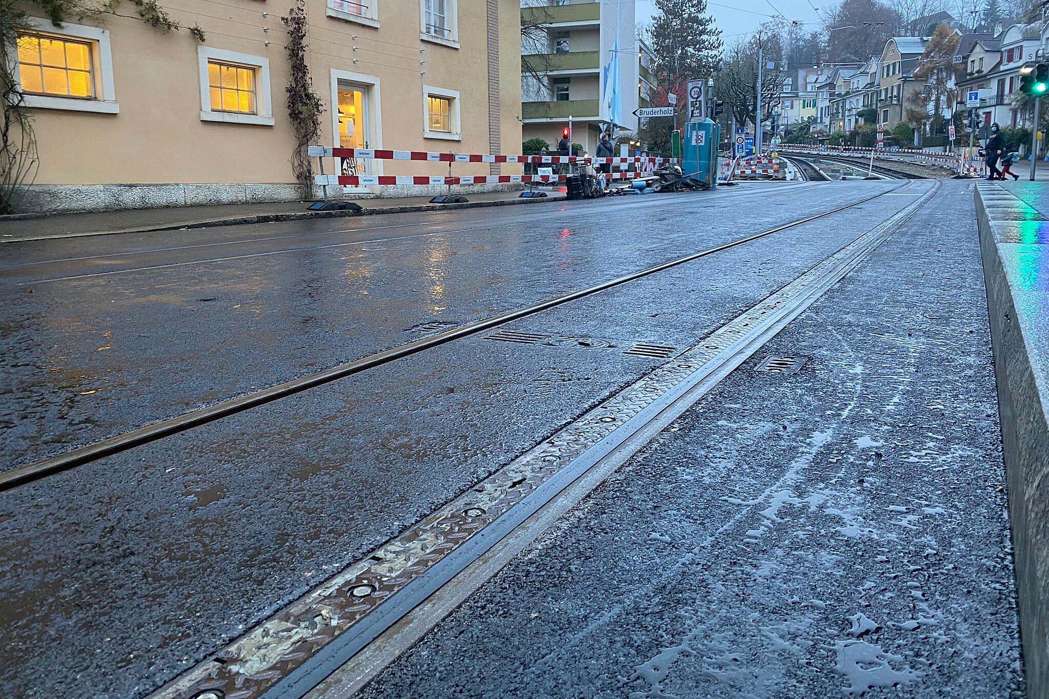 Dies könnte die Trams zum Entgleisen bringen. «Aus diesem Grund wird das velofreundliche Gleis voraussichtlich ab Mitte Dezember bis im kommenden Frühling pausieren», so das Bau- und Verkehrsdepartement.
