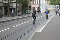 Tramgleise sind für Personen auf dem Velo eine Unfallgefahr. In Schweizer Städten wie Basel oder Zürich ist das Hängenbleiben in Tramschienen einer der häufigsten Sturzgründe für Radfahrende.