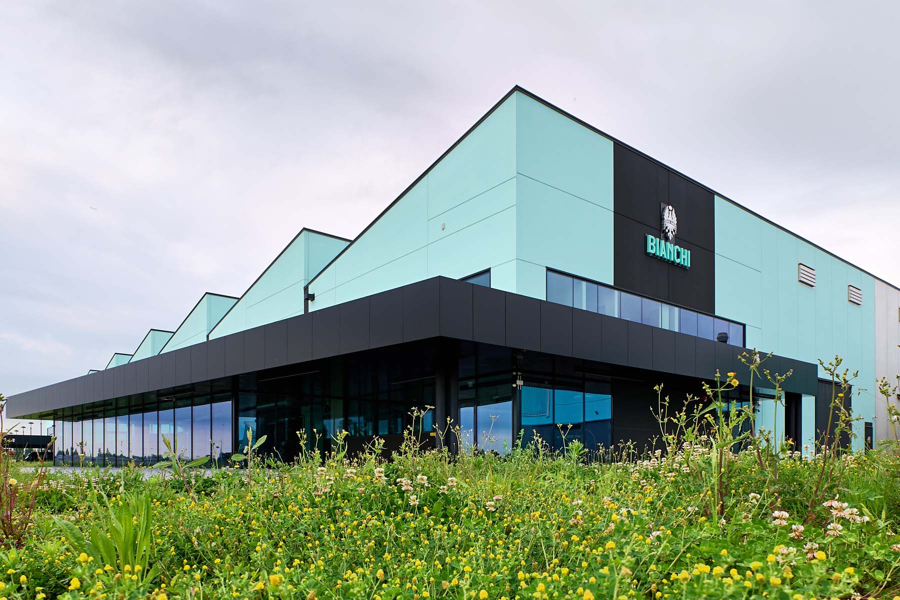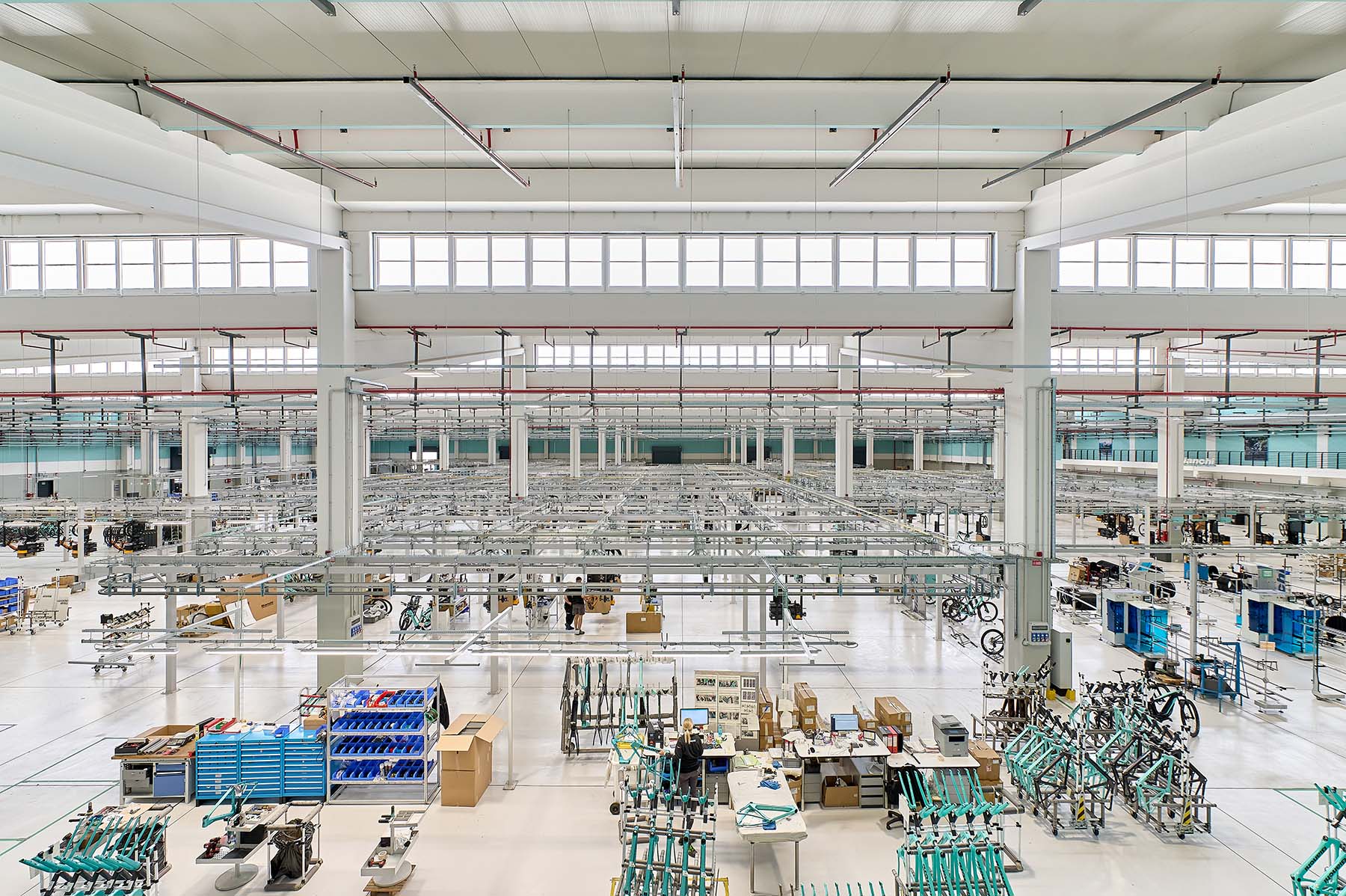 Die neue Fahrradfabrik trägt die grünblaue Farbe Celeste, die untrennbar mit Bianchi-Rennvelos verbunden ist. (Foto: ZVG)