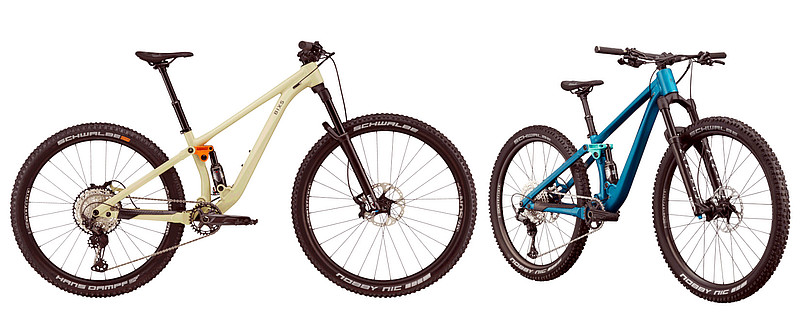 Als Basis für alle drei Mountainbike-Modelle des Schweizer Herstellers dient ein robuster Aluminium-Rahmen mit viel Schrittfreiheit. Die Viergelenk-Kinematik am Hinterbau stellt 120 mm Federweg zur Verfügung. Die Federgabeln und Federbeine steuert Manitou bei, während Bremsen und Schaltung von Shimano stammen.