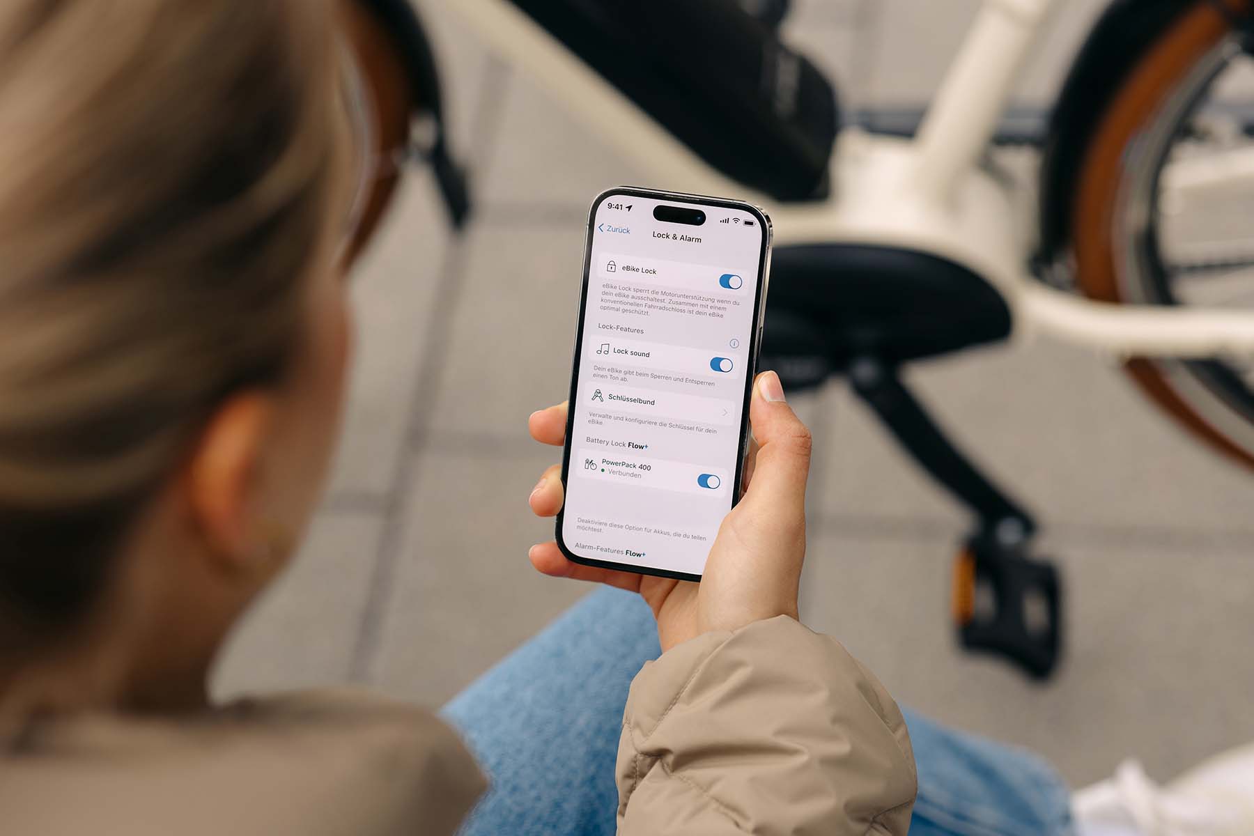 Zusätzlich zum mechanischen Diebstahlschutz per Schloss bietet «Battery Lock» eine digitale Komponente, die Langfingern das Geschäft mit geklauten Akkus ruiniert. Sobald die «Battery Lock»-Funktion in der «eBike Flow»-App aktiviert ist, sperrt sich der Akku automatisch, wenn das Elektrovelo ausgeschaltet wird.