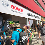 Mit dem Mountainbike-Worldcup, der nach 2015 auch in den kommenden beiden Jahren in der Lenzerheide Halt machen wird, bekam die Schweizer Velobranche neben den Bike Days und dem Test Ride eine dritte Gelegenheit, sich und die eigenen Produkte einem veloaffinen Publikum zu präsentieren. Davon machten einige Hersteller und Distributoren rege Gebrauch: Winora Schweiz lud zusammen mit Bosch zum E-Bike-Testen, und auch Flyer-Produzent Biketec war mit einer grossen Flotte an Testvelos für Strasse wie Gelände vor Ort.