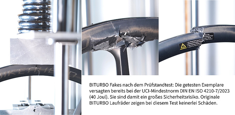 Die gefälschten Carbonlaufräder halten den normalen Belastungstests nicht stand und sind darum eine Gefahr für die Käuferinnen und Käufer. (Foto: ZVG)