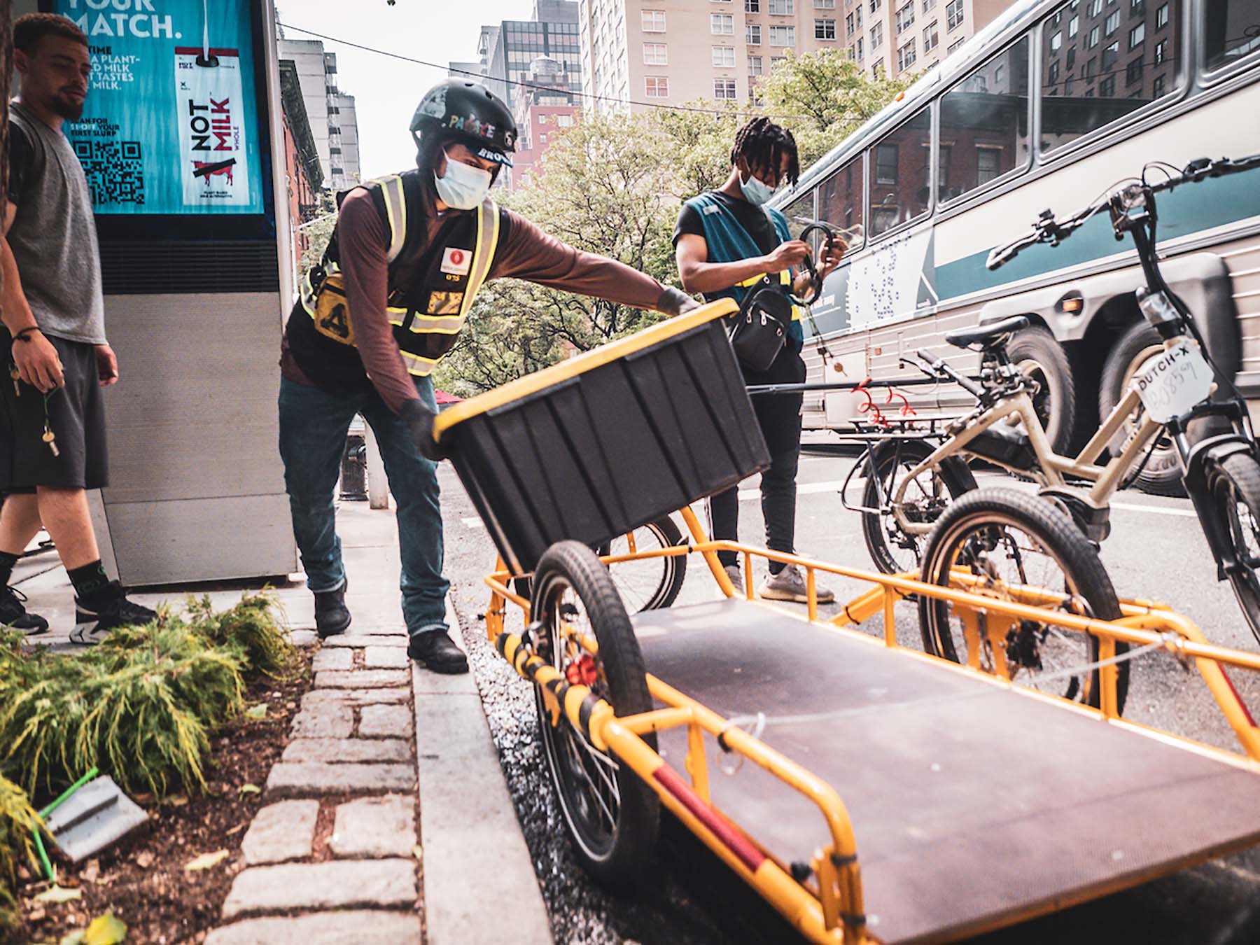 Cargobikes und Velos mit Anhänger, die von Lieferdiensten genutzt werden, haben von der Stadt New York eine Sondergenehmigung für das Parkieren in gewerblichen Zonen erhalten. Dadurch wird die Zustellung vereinfacht.