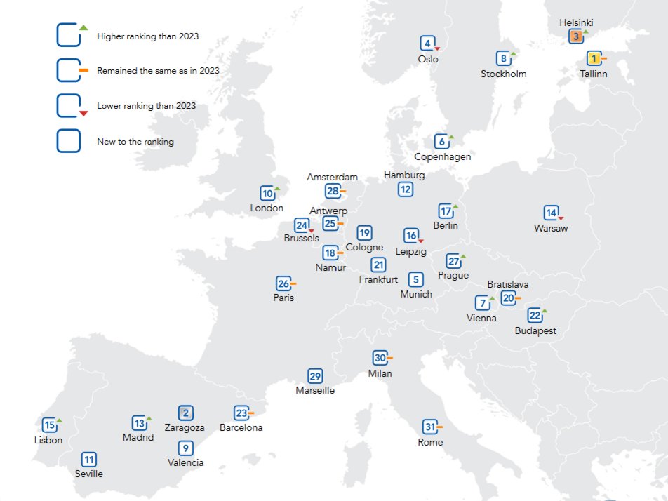 Auf dem ersten Platz landet Estlands Hauptstadt Tallin, gefolgt von Zaragoza in Spanien und der finnischen Hauptstadt Helsinki auf dem dritten Platz.