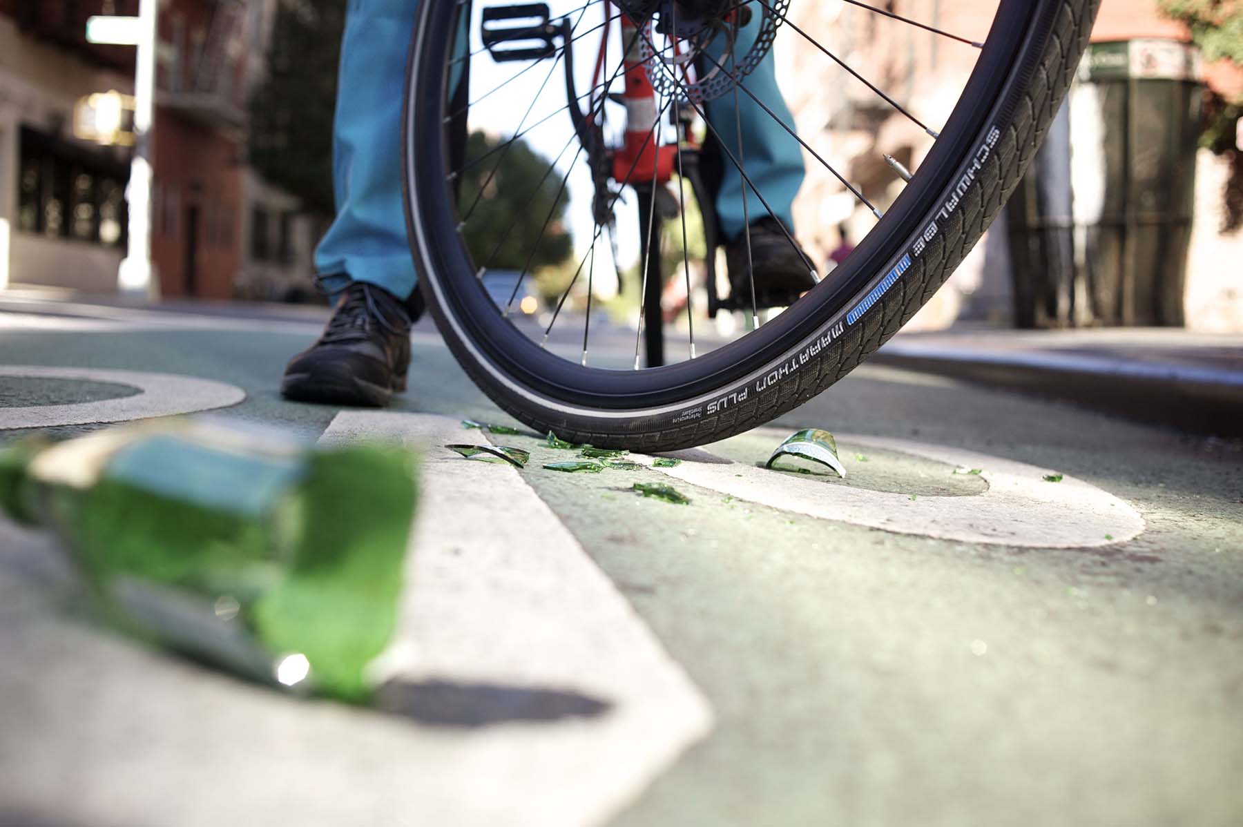 Anders als im sprichwörtlichen Sinn, bringen Scherben den Veloreifen kein Glück. (Foto: Schwalbe / pd-f.de)
