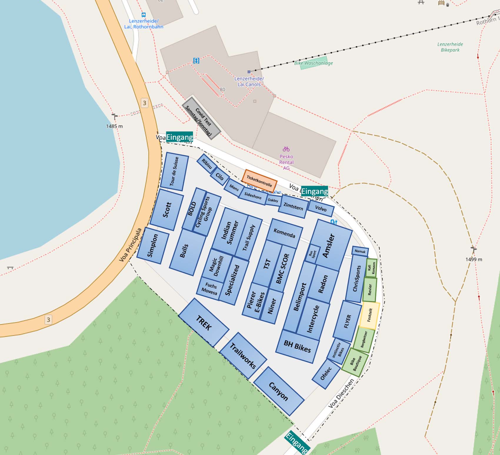 Auch die grossen Namen der Branche wie Specialized, Trek, Scott, Canyon oder Pierer E-Bikes markieren beim «Test Ride» mit ihrer Testbike-Flotte Präsenz.