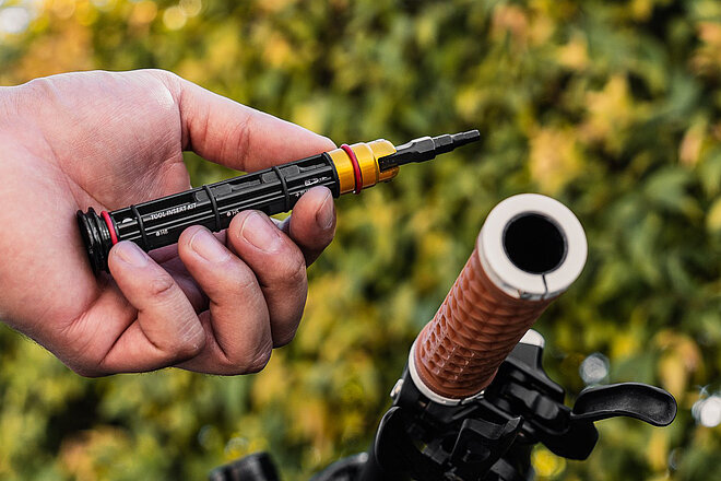 Dazu bietet Lezyne drei Varianten vom «Tool Insert Kit». Als kleinste Version passt das « Toll Insert Kit S» (empfohlener Verkaufspreis CHF 39.90.-) auch ins Ende eines Rennvelo-Bügels, bietet dafür aber auch nur fünf Bits. Beim «Tool Insert Kit M» (empfohlener Verkaufspreis CHF 49.90.-) sind schon acht Bits an Bord, und im Lieferumfang vom «Tool Insert Kit L» (empfohlener Verkaufspreis CHF 54.90.-) gehören elf Bits. Die beiden grösseren Varianten passen auf Grund ihrer Länge aber nur in Mountainbike- und nicht in Rennvelo-Lenker.