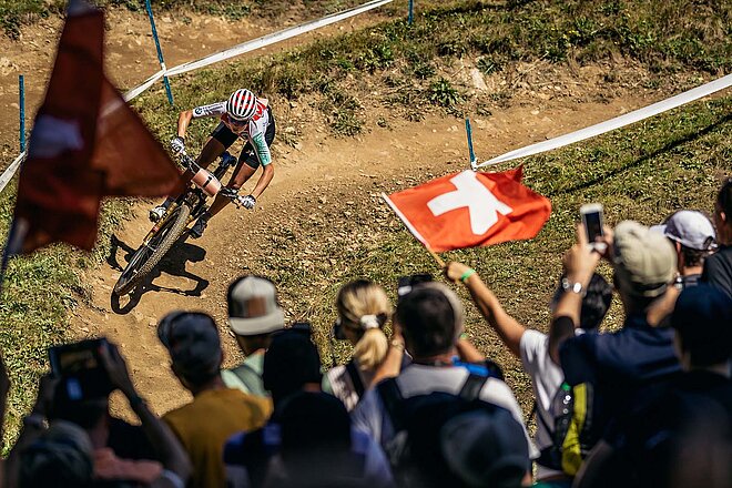 Die Bike-WM in der Lenzerheide im vergangenen September war ein Spektakel. Rekordverdächtige 65'000 Zuschauerinnen und Zuschauer verfolgten die Wettkämpfe im Bündner Ort. Nun kehren die weltbesten Bike-Athletinnen zurück.