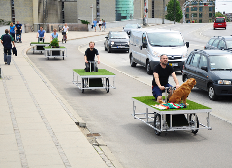 Mit dem Park-Velo «Parkcycle Swarm» entsteht ein Park genau da, wo er gerade gebraucht wird. (Foto: n55.dk)