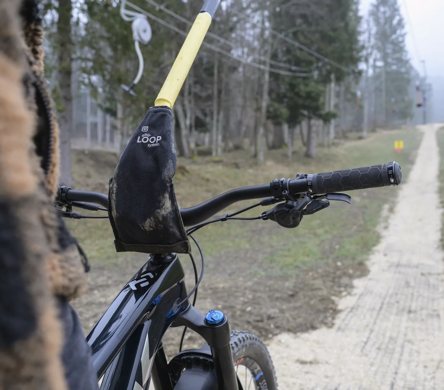 Der umgebaute Tellerlift kann ganz einfach am Lenkerkopf eingehängt werden. (Foto: Bikepark Valbirse)