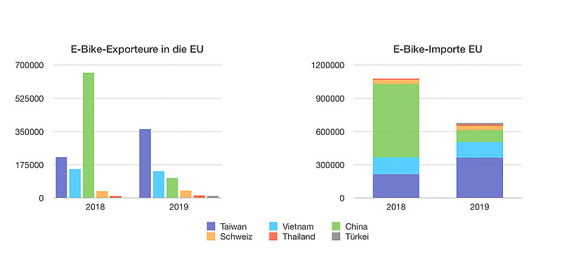 Alles richtig gemacht? Noch vor der Pandemie zeigte sich die Wirkung der Anti-Dumpingstrafzölle eindrücklich in den Zollstatistiken der EU. (Grafik: Cyclinfo)