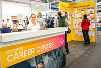 Während in den beiden doppelstöckigen Hallen 11 und 12 vor allem Unternehmen mit aktivem Endkundengeschäft ausstellen, sieht es in den Hallen 8 und 9 anders aus. Die Halle 8 beherbergt ausser der Cargo Zone und Bühnen für Preisverleihungen und Panels auch viele Zulieferer für E-Bikes sowie Aussteller aus dem Bereich der E-Mobilität - vom E-Trottinett bis zu Tretmobilen aller Grössen. In der Halle 9 stellen reine Zulieferer, also Unternehmen ohne Endkundengeschäft, auf einem zusätzlichen Stockwerk an nur drei Tagen aus: Am Freitagabend ist für diese die Messe gelaufen. Dieses neue B2B-Ausstellerpaket wurde laut Stefan Reisinger seitens der Branche sehr gut angenommen, und das zusätzliche Stockwerk ist komplett ausgebucht.