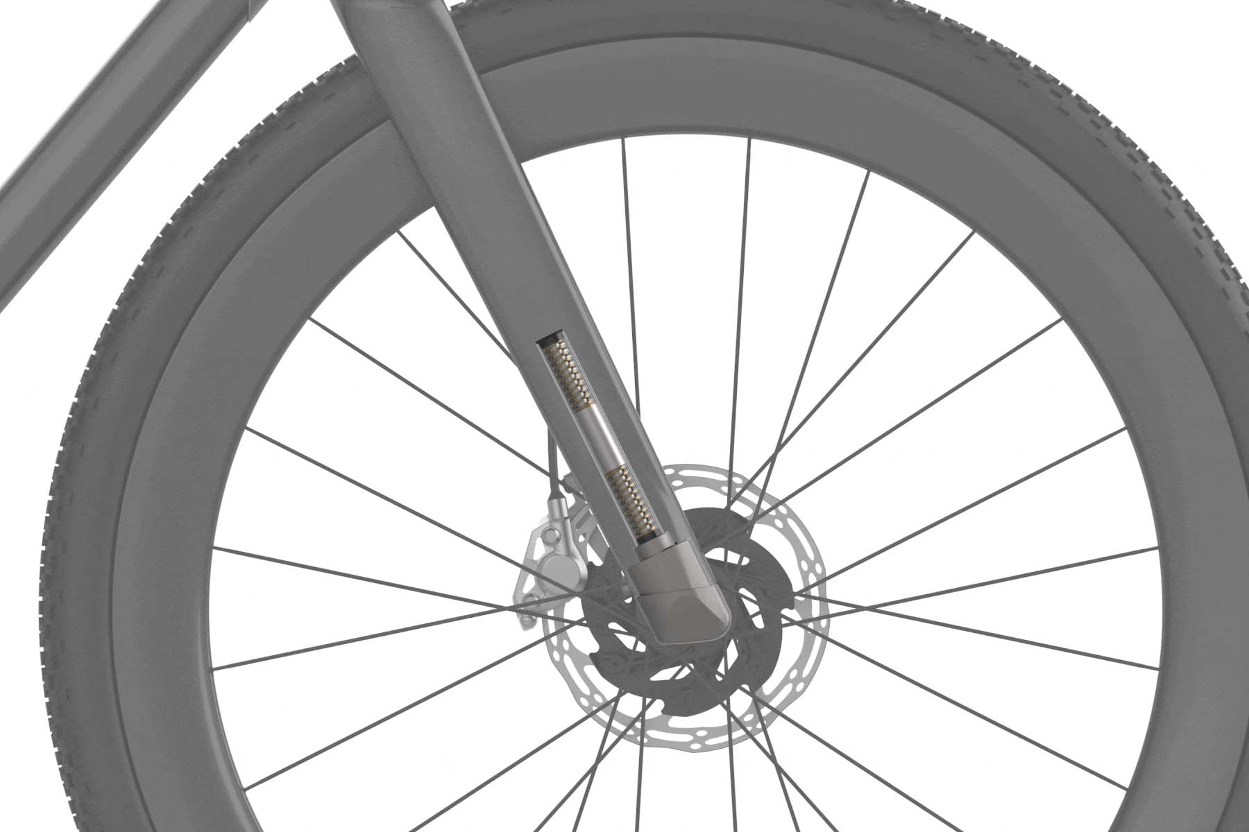 Singenberger verbaut nun als erster einen solchen Dämpfer, der nur 200 g bis 250 g Mehrgewicht nach sich zieht, in einem Gravelbike. «Der Erlkönig an der Messe ist für mich eine Machbarkeitsstudie. Anfragen von Marken, die mein Design in die Serie umsetzen oder Teile der Technik verwenden wollen, sind willkommen», erklärt Rolf Singenberger im Gespräch mit Velojournal.