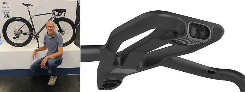 Rolf Singenberger (links) posiert mit dem «RS Gravel». Rechts ein Rendering der clever gestalteten Lenker- und Vorbaueinheit. (Foto: Velomedien, Laurens van Roijen / Bild: ZVG)