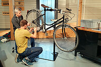 Dies geschieht einerseits in Form von Fachvorträgen zu verschiedenen Themen und andererseits mit Hilfe einer Musterwerkstatt, die einen Einblick in die Ausbildung zum Zweiradmechatroniker sowie weiteren technischen Berufen mit Velobezug vermitteln soll. Das gemeinsam mit dem VSF organisierte «Career Center» überzeugte im vergangenen Juli inhaltlich und war eines der Highlights der Eurobike. Wegen der Platzierung im 2. Stock der Messehalle 12 entfaltete es seinen Reiz aber ein wenig im Verborgenen.