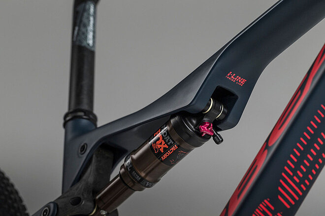 Auf die Saison 2018 hin zusammen mit Fox entwickelt, hat Orbea mit dem «i-Line»-System (auch «Inside Line») eine elegante Art gefunden, die Arretierung des Federbeins sauber ins Rahmendesign zu integrieren. Vom Remote-Hebel am Lenker aus verschwindet der Zug am Steuerrohr im Rahmen und wird durchs Oberrohr direkt zur vorderen Dämpferaufnahme geführt. Das eliminiert erhöhte Reibung durch enge Biegungen der Aussenhülle und sorgt dafür, dass der Arretierhebel am Federbein aus dem Weg ist - vorausgesetzt, dass ein passendes «i-Line»-Federbein von Fox verbaut ist.