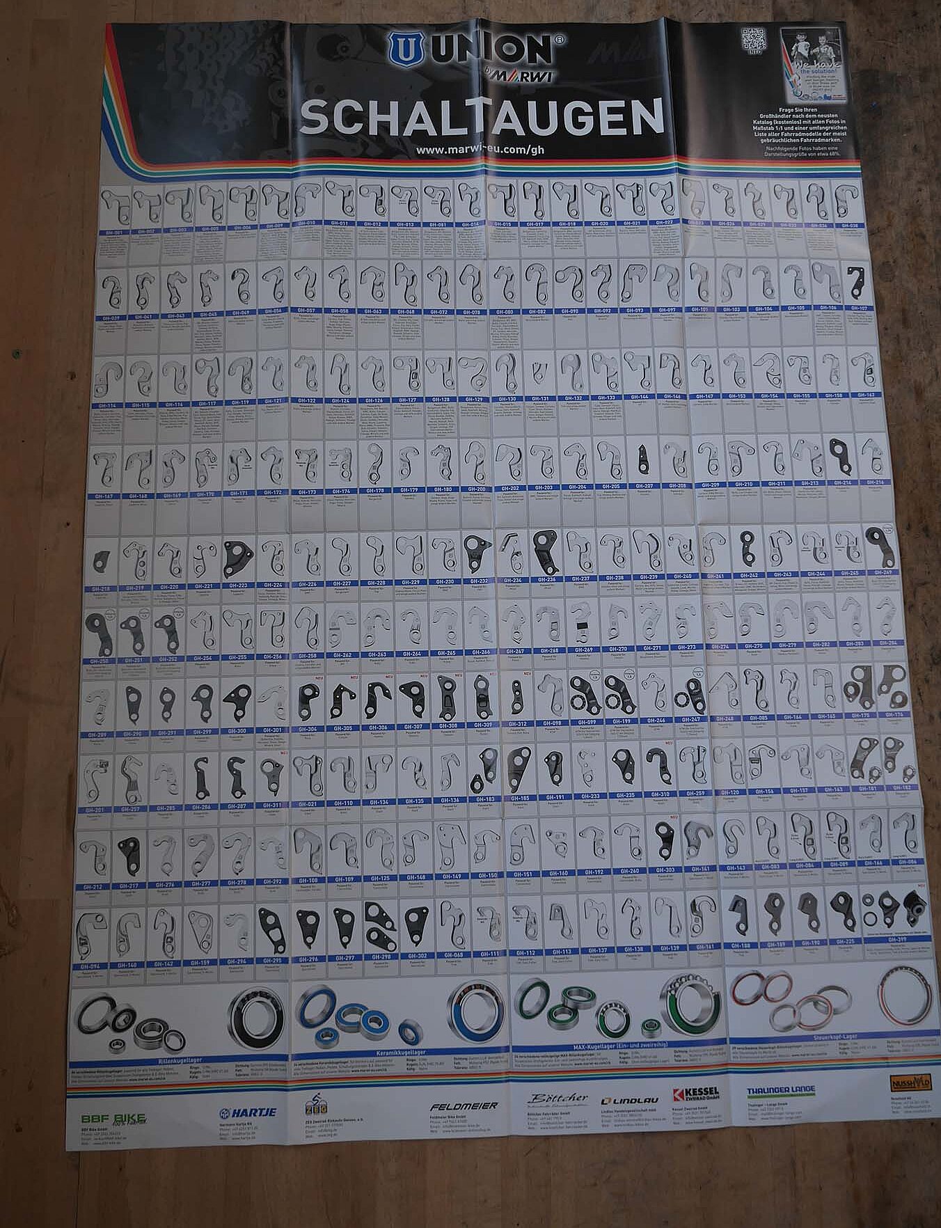 Trotz fortschreitender Digitalisierung der Velowerkstatt scheint dies noch immer der schnellste Weg zum richtigen Ersatzteil zu sein. Erhältlich ist das A0-Plakat seit diesem Frühling bei den lokalen Vertretern von Marwi. In der Schweiz ist dies die Firma Nusshold AG mit Sitz in Zürich.
