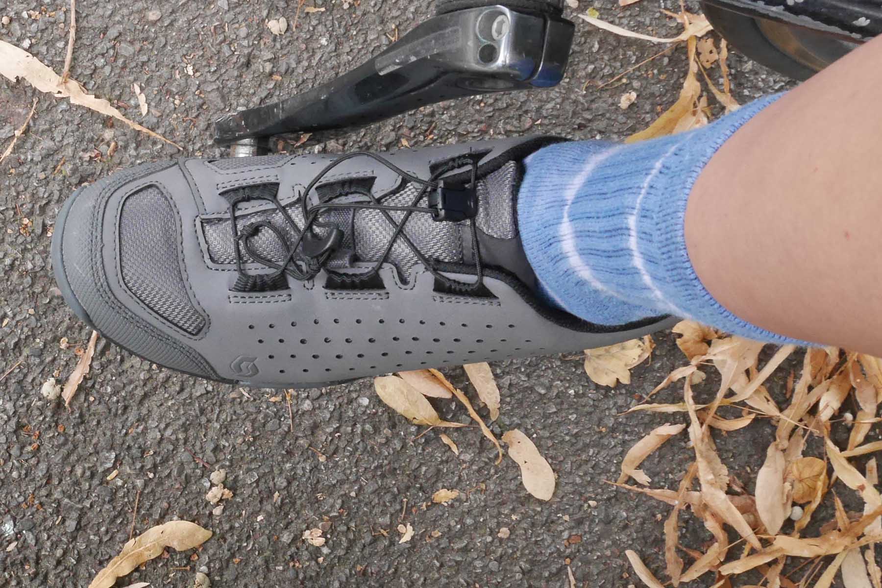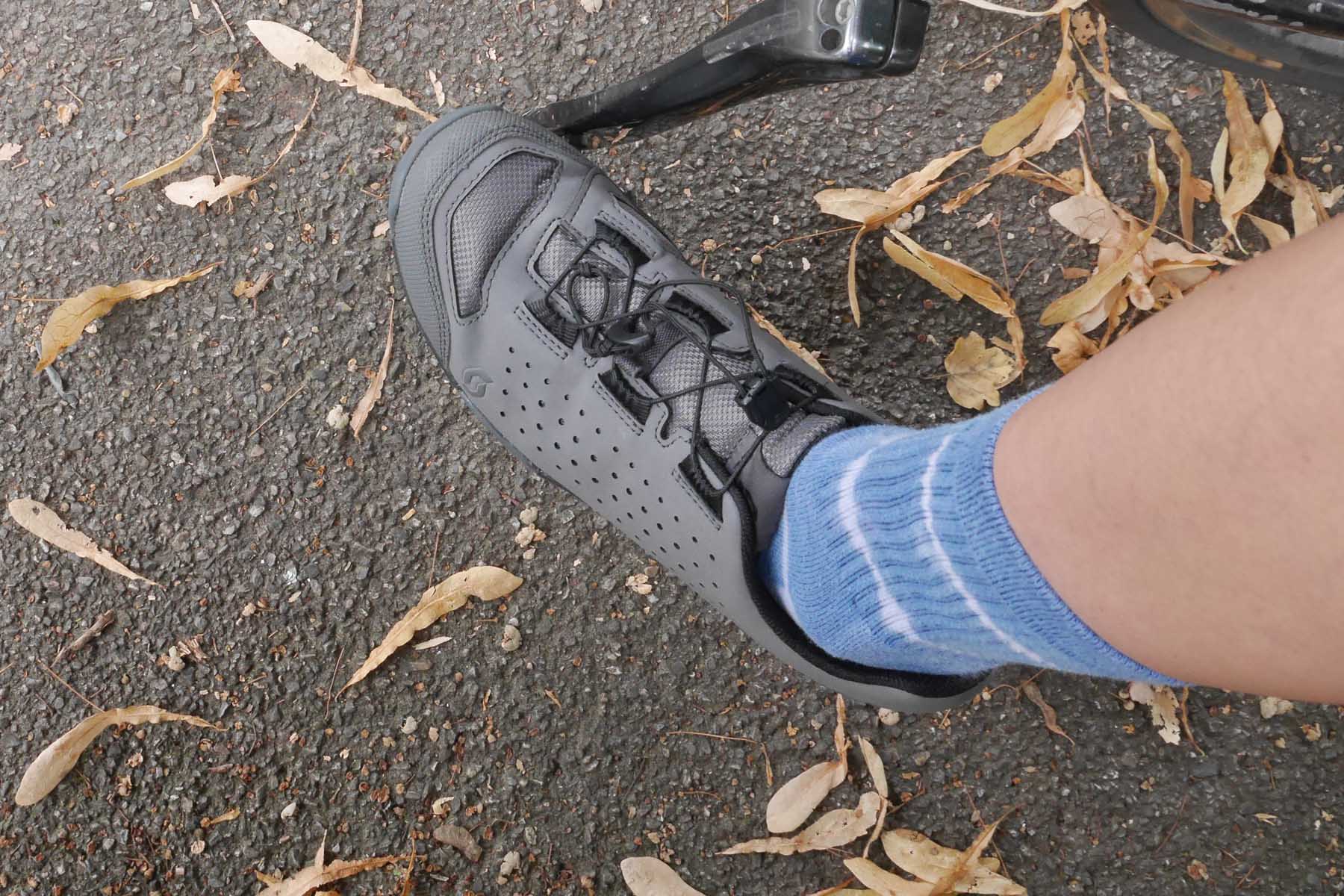 Diese fixierte Position bringt gleich mehrere Pluspunkte mit sich: Das Überqueren von Schwellen oder holprigen Passagen ist kontrollierter und sicherer. Der Schuh kann nicht im entscheidenden Moment wegrutschen, sondern bleibt auch bei Nässe oder Schlamm auf dem Pedal.