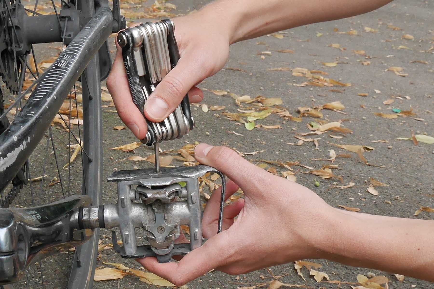 Zum Anfangen stellt man die Auslösehärte des Pedals niedrig ein. Dazu braucht es meist einen 3-mm-Inbus-Schlüssel.