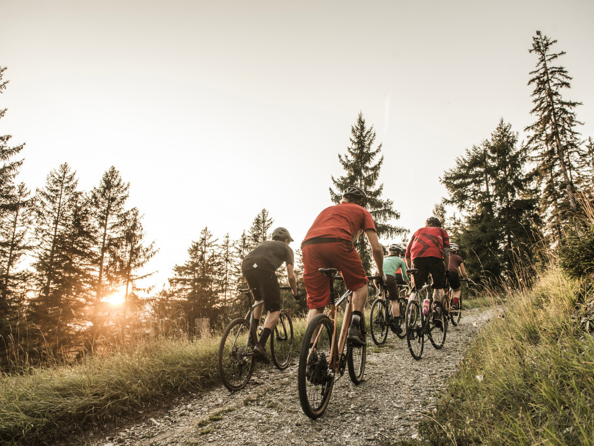 Zusammen in die Pedale treten, die Berglandschaft auf unbefestigten Routen erkunden und dabei gutes Essen und Live-Musik geniessen: Das ist das Konzept von «Grinduro».
