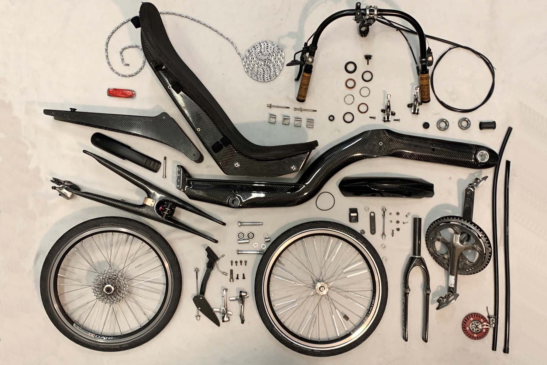 Das «Peregrin» ist ein Liegevelo aus Carbon. Entwickelt wurde es von Charles Henry aus Zürich, gebaut wird es in der Edelliegeveloschmiede von Jürg Birkenstock in Rapperswil.