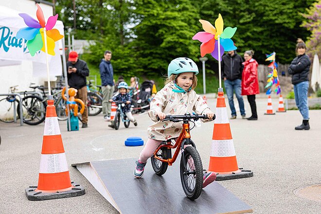 Das neue Programm Ride Girls will das ändern. Es richtet sich an Mädchen zwischen zwei und sechs Jahren – und an deren Eltern. Bei kostenlosen Mini-Events in Zürcher Gemeinschaftszentren erleben Mädchen, wie viel Spass ein wendiges, passendes Velo machen kann. Gleichzeitig erfahren die Erwachsenen, wie sich träge Rahmen und schlechtes Handling auf den Fahrspass auswirken – etwa bei einer Fahrt durch den Parcours: Zuerst wird auf einem alten Damenrad eine Runde gedreht und anschliessend zum Vergleich auf einem sportlichen Bike.