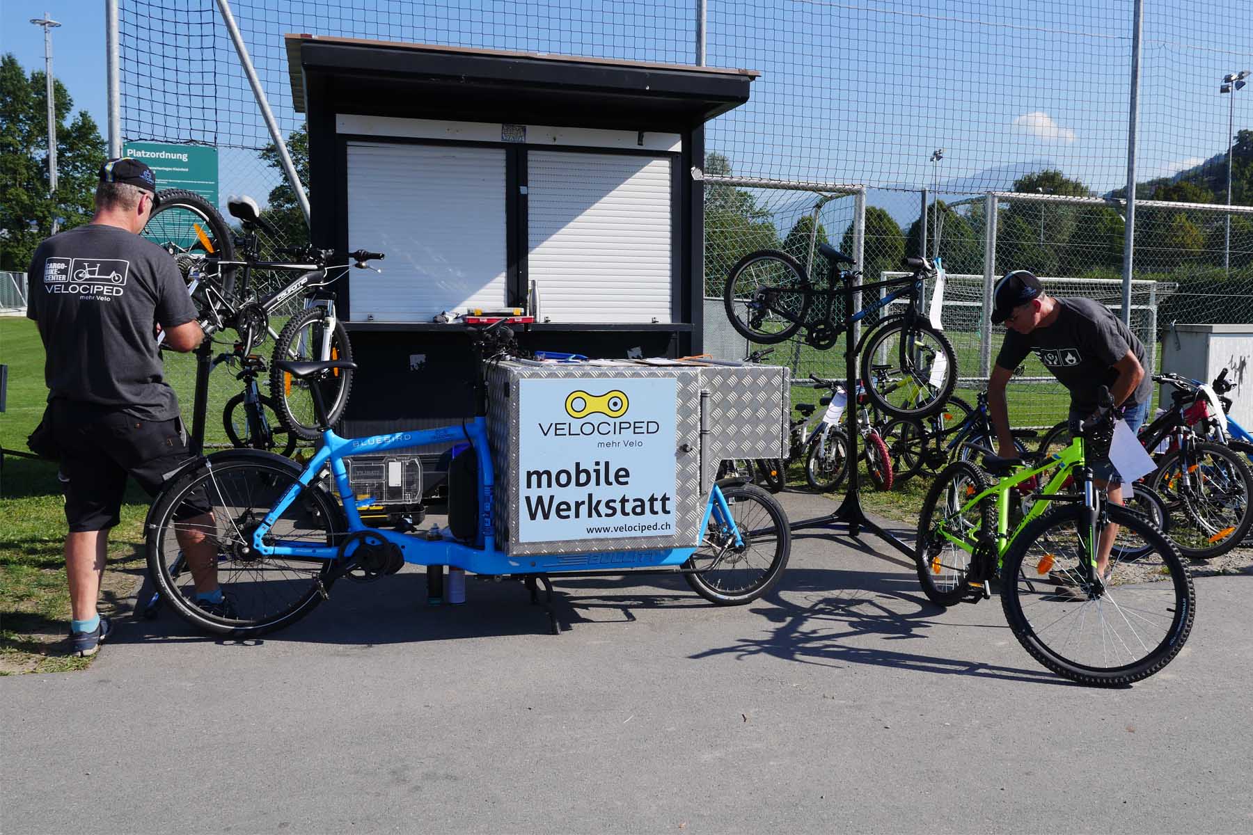 Dabei wurden mehr als 30 Velos auf Fahrsicherheit kontrolliert, eingestellt, gepumpt, die Kette geölt und Kleinreparaturen direkt ausgeführt. Die Velociped-Fahrradmechaniker Martin Arnold und Roel Tubée freuen sich über die Aktion: «Nach dem Velocheck fahren die Kinder nicht nur sicherer, sondern auch leichter. Oft ist mit ein paar Handgriffen schon viel erreicht. So macht die Velofahrt zum Training noch mehr Spass».