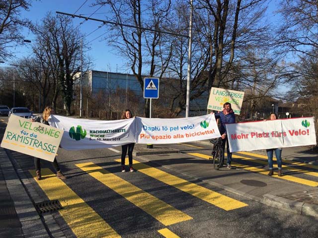 Als Auftakt ruft eine Gruppe Studierender am 2. März zum «Velozug durch Zürich» auf. Dazu schreiben die Organisatoren der bewilligten Demo: «Velofahren in der Stadt ist eines der grössten Risiken, denen wir uns alltäglich und wie selbstverständlich aussetzen.» Mit mehr als 400 Unfällen im letzten Jahr seien die Radfahrenden die im Zürcher Strassenverkehr am meisten gefährdeten Verkehrsteilnehmer.