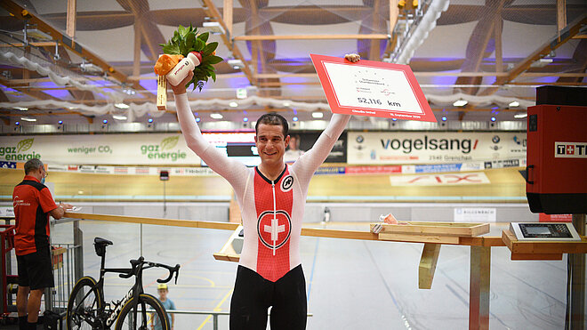 Claudio Imhof hat im Tissot Velodrome in Grenchen einen neuen Schweizer Rekord aufgestellt. In einer Stunde legte der Thurgauer 52,116 Kilometer zurück und übertraf den früheren Rekordhalter Marc Dubois um rund 3,8 Kilometer. Dieser hatte seinen Rekord drei Jahre zuvor auf der gleichen Rennbahn aufgestellt.