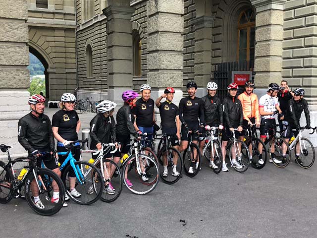 So traf sich am 12. Juni die Radgruppe Bundeshaus zur ersten gemeinsamen Ausfahrt. Sieben Politikerinnen und Politiker legten eine lockere Rennvelorunde zurück. Dabei waren sie in prominenter Gesellschaft. Fabian Cancellara war mit von der Partie. Die Gruppe wurde zudem von Swiss-Cycling-Vertretern begleitet.