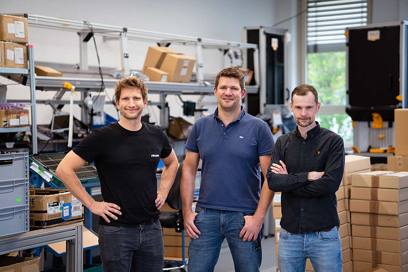 Schlüpfen mit Fazua nun komplett unter das Konzerndach des Sportwagenherstellers Porsche (von links): Fazuas Mitgründer Johannes Biechele, Managing Director Florian von Wurmb-Seibel und Mitgründer Fabian Reuter. (Foto: ZVG)