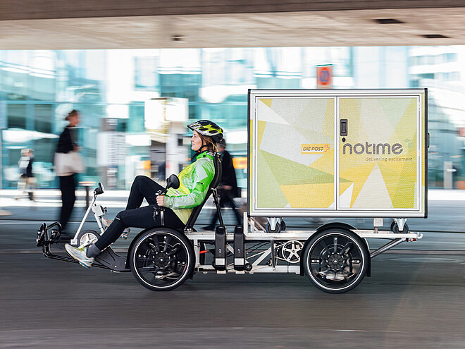 Unterwegs sind die Kuriere von notime unter anderem mit dem Schwerlastenvelo «Armadillo» von Velove, das viel vor Wind und Wetter geschützten Stauraum bietet. Dieses Modell wird von DHL bereits in London un anderen Städten eingesetzt. In den Niederlanden vertraut die Supermarktkette Albert Heijn für die Zustellung von Homeshopping-Einkäufen im urbanen Raum schon länger auf das «Tender»-Lastenvelo des Anbieters Urban Arrow, der erst kürzlich unter das Dach der PON Bike-Gruppe geschlüpft war. Auch die Post nutzt dieses Modell bereits. Man darf gespannt sein, ob in absehbarer Zukunft mehr Lastenvelos und weniger Lieferwagen durch Schweizer Wohnquartiere kurven werden.
