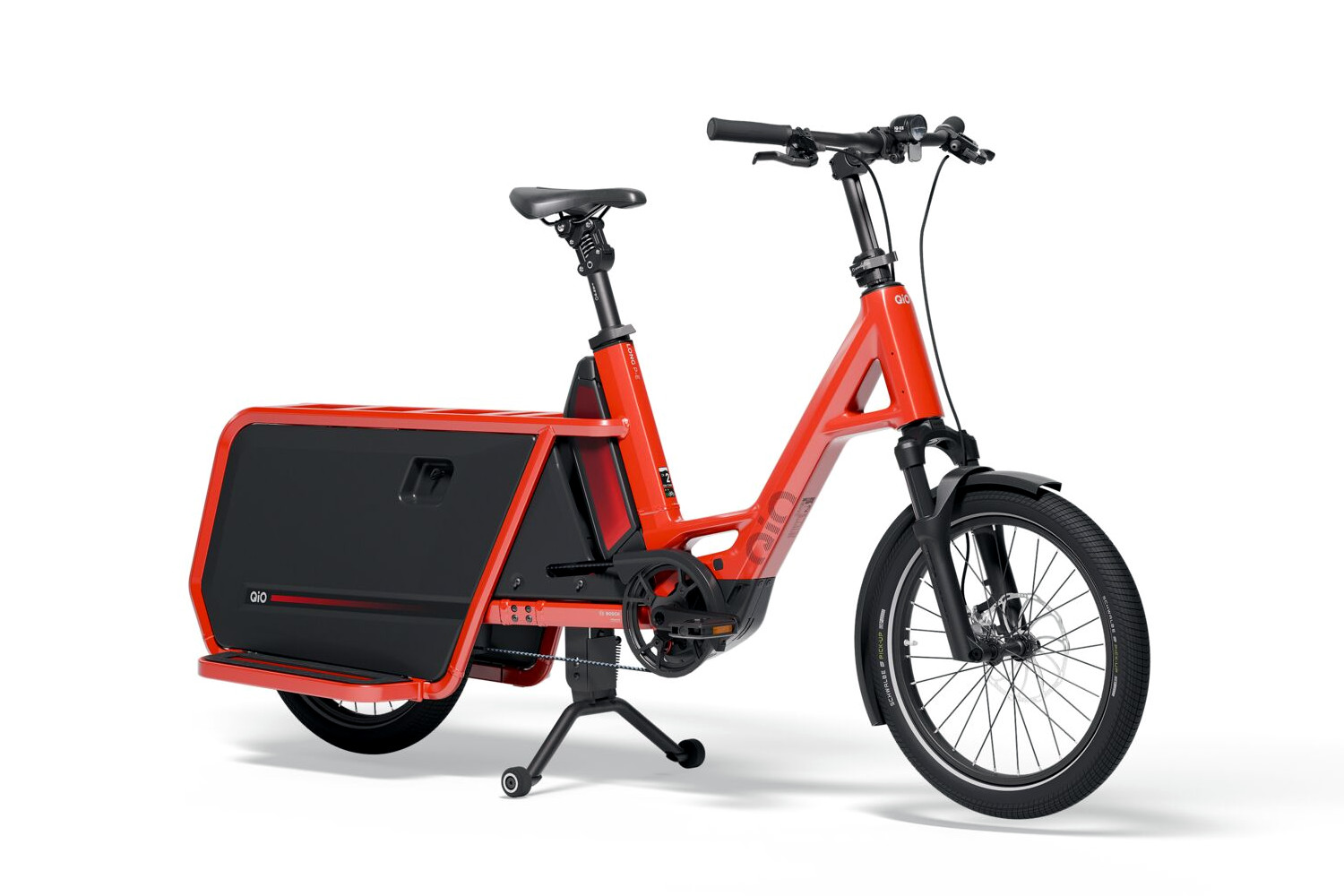 Der in acht Farben lieferbare Rahmen wird in nur einer Grösse angeboten. Einfach abnehmbare Abdeckungen verhindern, dass Kinderfüsse in die Speichen geraten, verschiedenes Zubehör macht das Qio «Long» vielseitig.