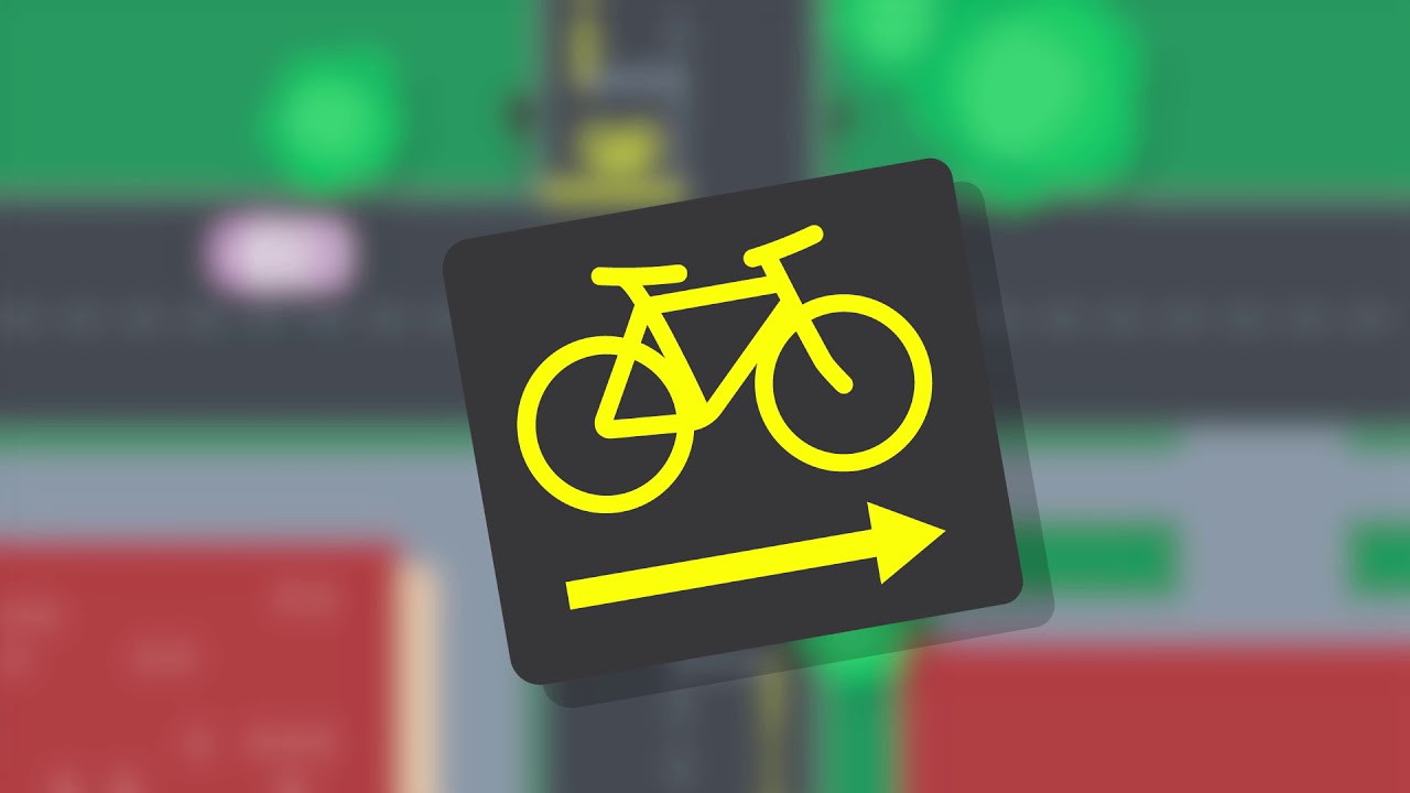 Ein kleines Schild macht den Unterschied. An Ampeln mit dieser Zusatztafel dürfen Velofahrende bei Rot nach Rechts abbiegen. (Bild: Screenshot Youtube)