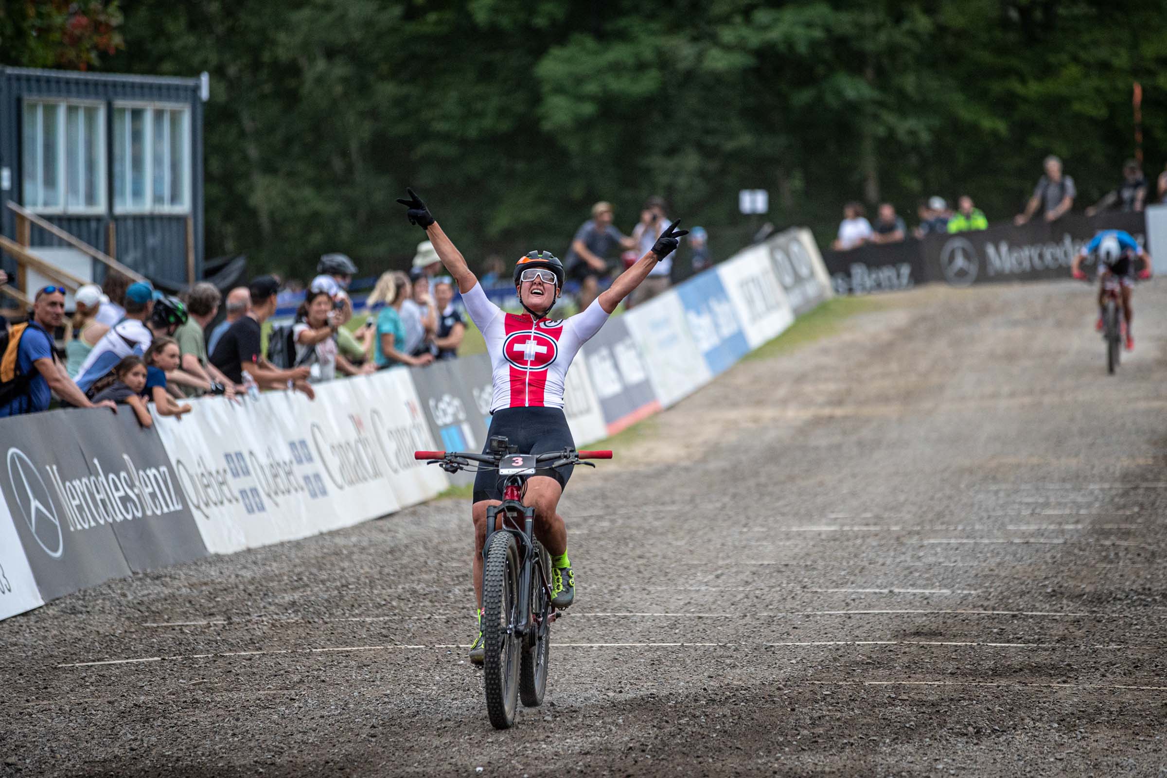 Für Nathalie Schneitter ist es breits der zweite WM-Titel in ihrer Karriere. 15 Jahre nach dem Cross-Country-Juniorenweltmeistertitel feierte die 33-Jährige in Mont-Sainte-Anne nun ihren Sieg auf einem E-Mountainbike.