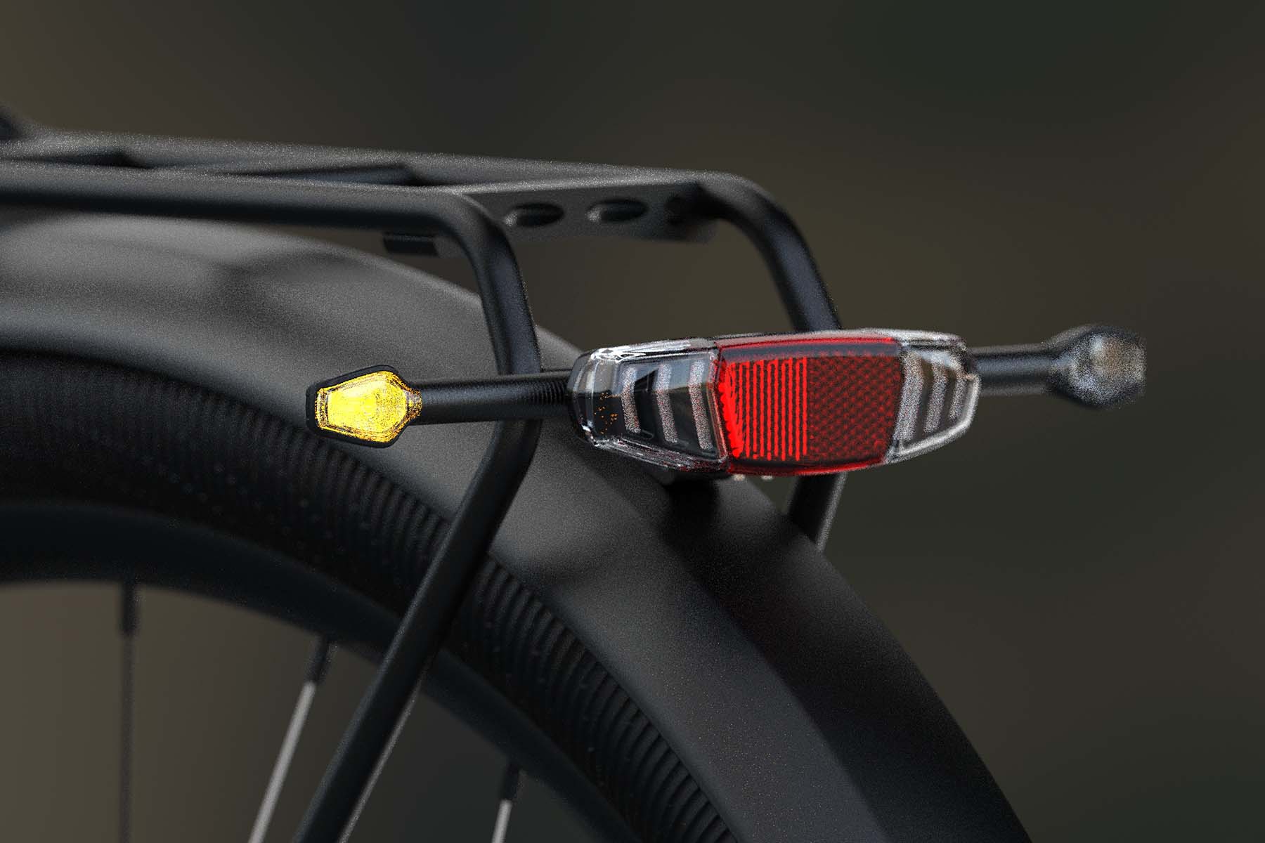 Einhändig fahren und Handzeichen geben (über-)fordert viele Personen auf dem Velo oder E-Bie. Der deutsche Hersteller Busch & Müller lanciert darum Blinker für E-Bikes. Je zwei Blinker am Lenker und am Gepäckträger können bequem mit einem Multifunktionsschalter am Lenker bedient werden. So können die Hände beim Abbiegemanöver und bei Richtungswechseln am Lenker bleiben, was die Fahrsicherheit erhöht. Das «Turntec»-Set wird (ohne Montage) ca. 360 Franken kosten.
