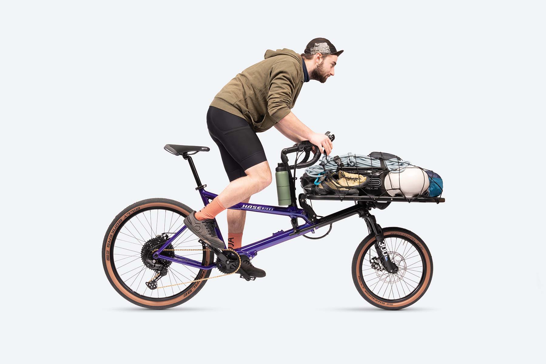 Das abnehmbare «Cargoboard» trägt Gepäck bis 40 kg. Wer mehr transportieren will, schraubt den als Zubehör erhältlichen «Lowrider» an und hängt an jede Seite noch Taschen. Das maximale Systemgewicht (Velo plus Fahrerin oder Fahrer und Gepäck) beträgt 200 kg, wobei das Hase «Gravit Dust» gut 20 kg auf die Waage bringt.