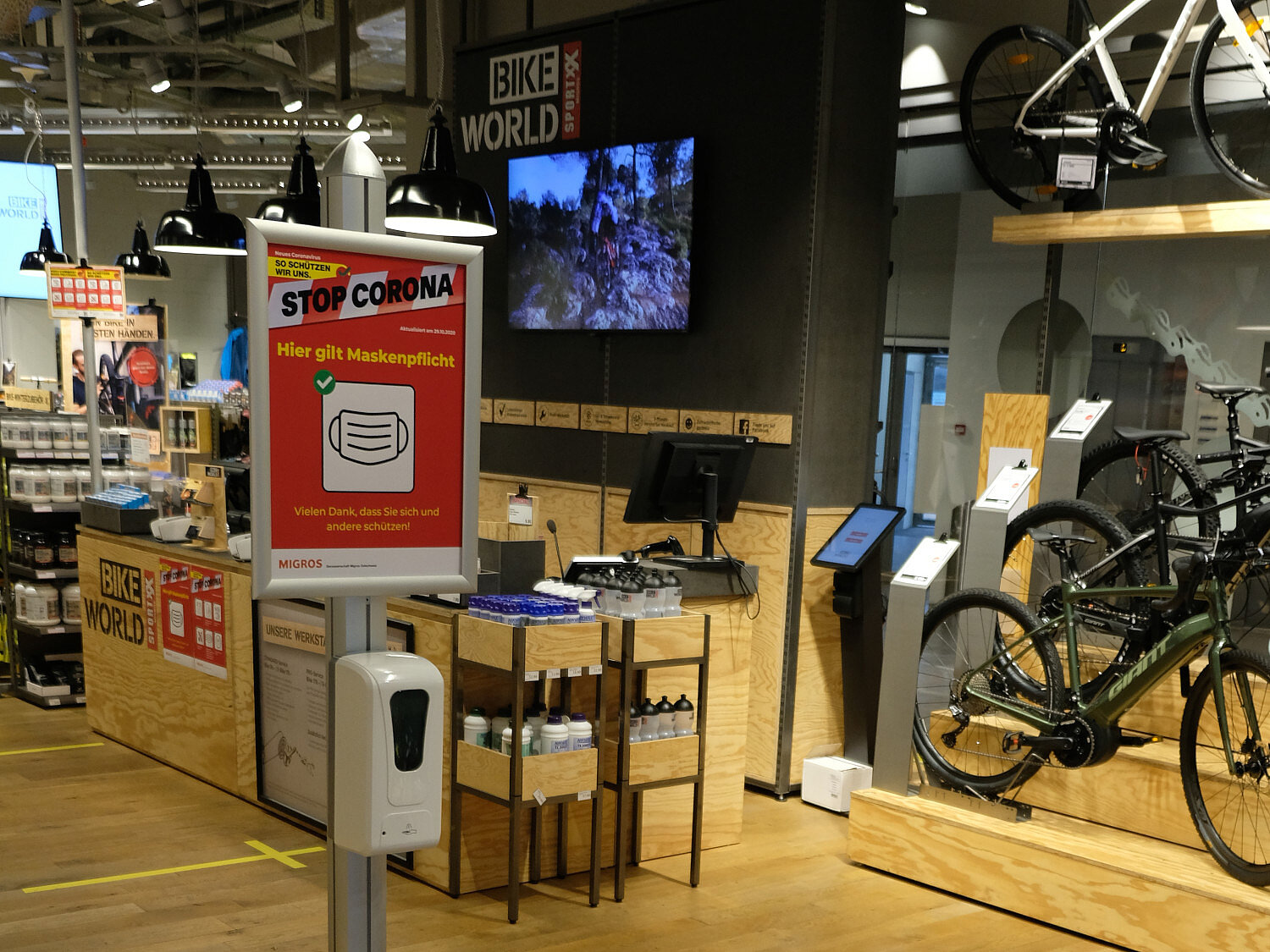 Wegen der noch immer hohen Anzahl täglicher Neuinfektionen mit dem neuartigen Coronavirus hat der Bundesrat Mitte Oktober die Maskenpflicht verschärft. Diese gilt seither auch in allen öffentlich zugänglichen Innenräumen und neuerdings sogar an stark frequentierten Orten im Freien. Erste Kantone wie Genf und Neuenburg gehen noch weiter und schreiten bereits zu Mini-Lockdowns. Während diesen müssen die Verkaufslokale des Detailhandels wieder mit wenigen Ausnahmen, etwa Apotheken und Lebensmittel-Läden, schliessen. Das gilt so auch für Veloläden, nicht aber für die Werkstatt.