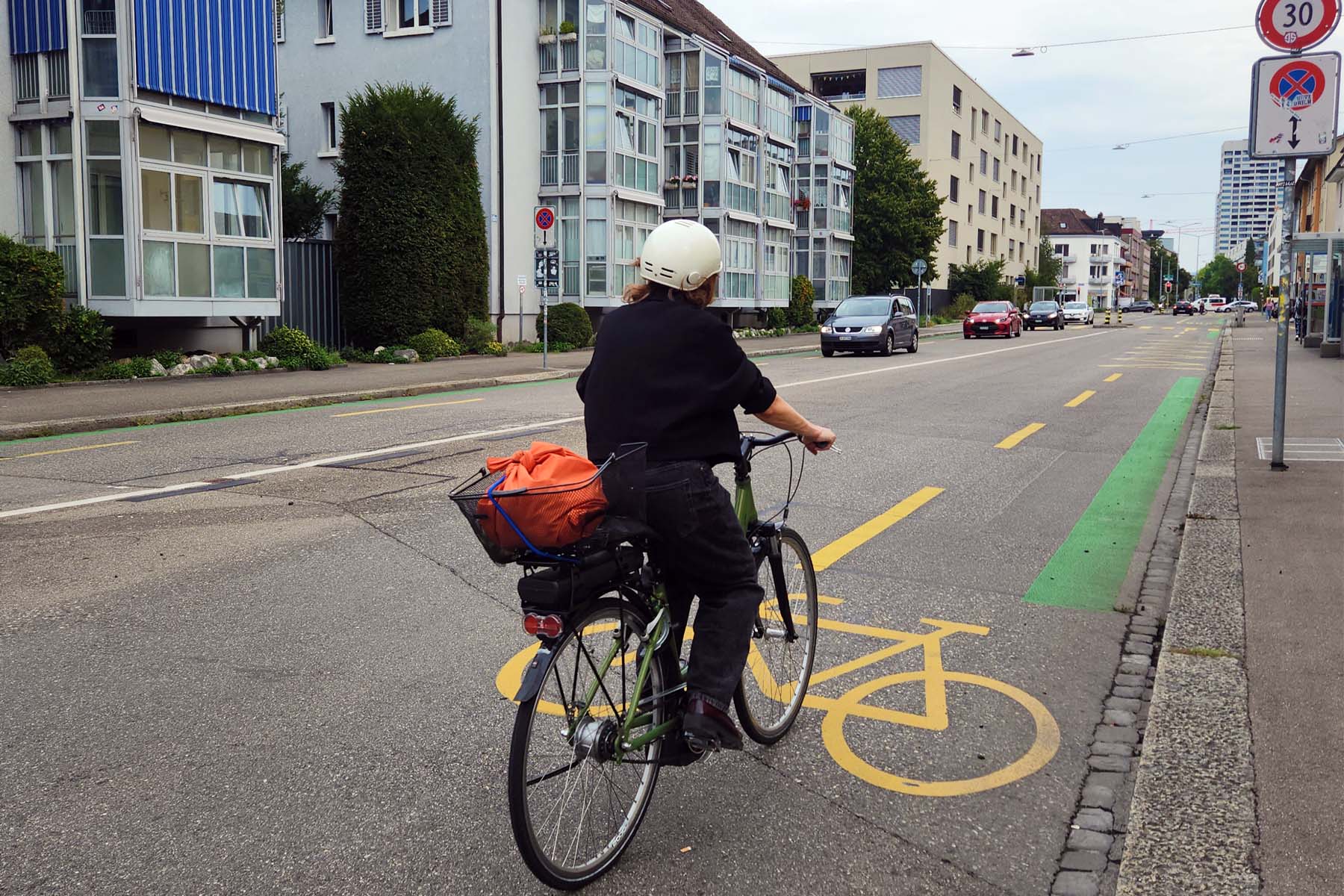 Auf derselben Route, nur wenige Hundert Meter weiter, soll es noch ärger für Velofahrende werden. Dort plant das Tiefbauamt, die Velostreifen am westlichen Ende der Baslerstrasse zurückzubauen. Die Fahrspur soll auf drei Meter pro Seite verengt und mit einem begrünten Streifen in der Mitte versehen werden.