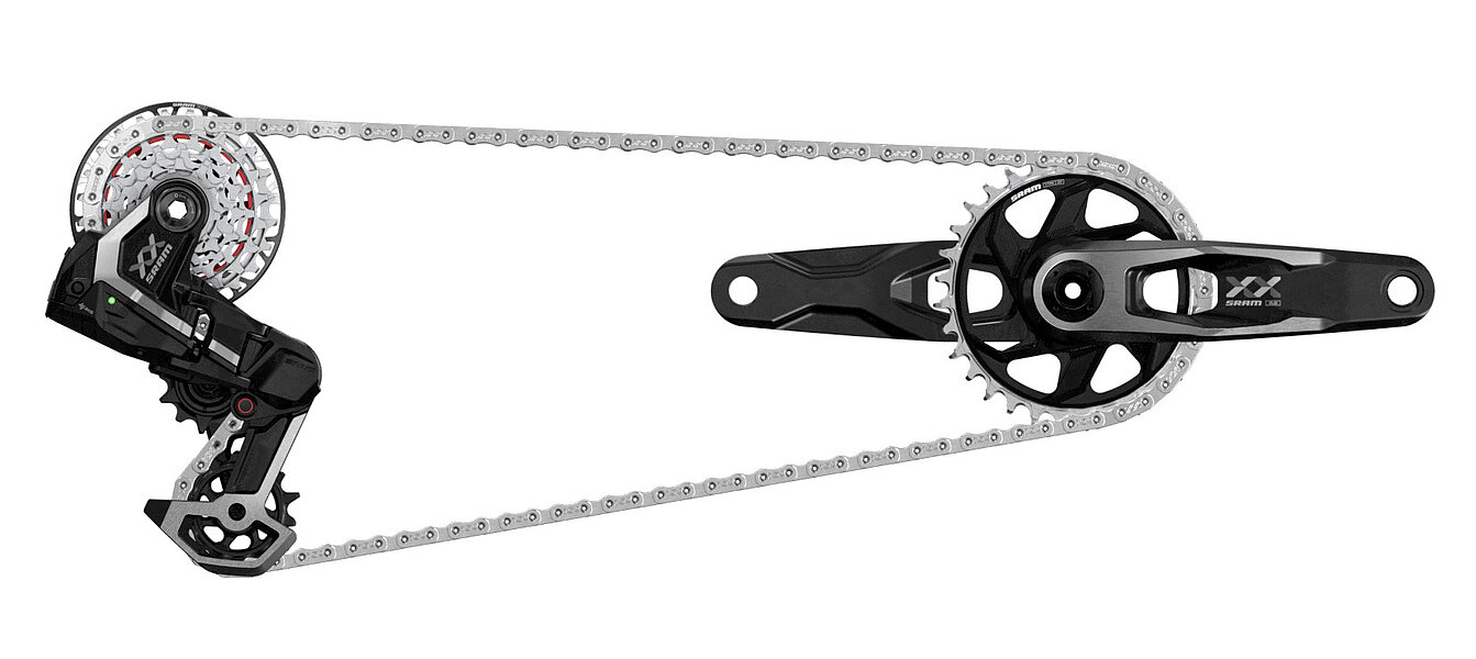 Mit geringer Bandbreite und kurzem Käfig kommt der Sram-«XX DH»-Antrieb sehr kompakt daher – und lässt sich nach Stürzen auch zum Teil reparieren.