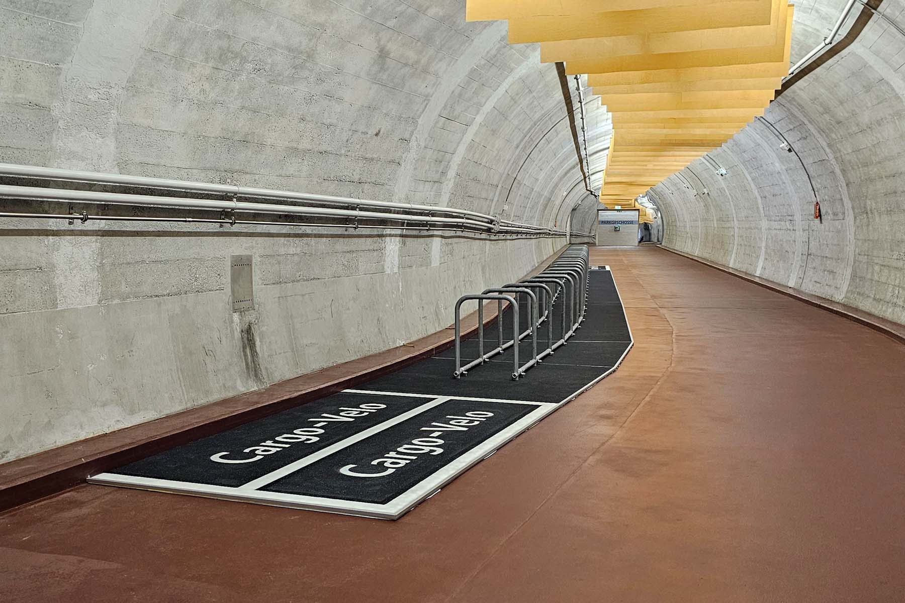 Mit einem Pilotprojekt testet Zürich nun, wie gut sich ein Auto- als Veloparkhaus eignet. Im Parkhaus «Hohe Promenade» in unmittelbarer Nähe des Stadelhofens stehen ab sofort 50 Veloparkplätze und vier dezidierte Flächen für Cargobikes bereit. Die Flächen für die Velos befinden sich im Eingangsbereich des Parkhauses.