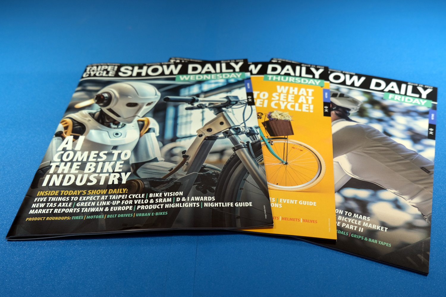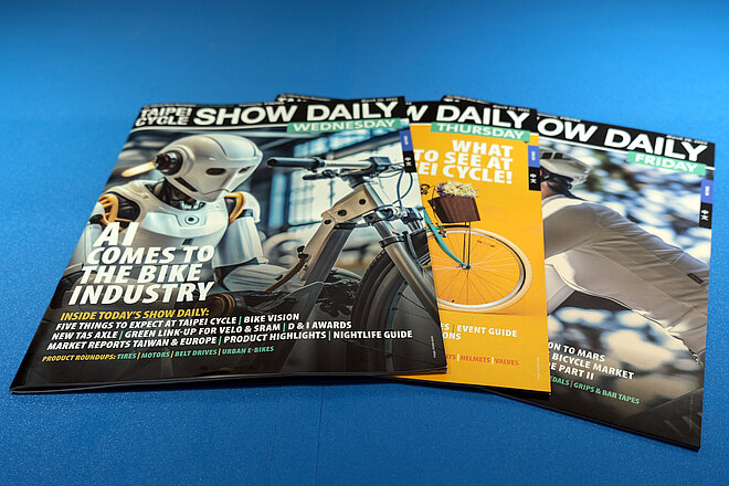 Für Velomedien-Autor Laurens van Rooijen bedeuten die Eurobike und die Taipei Cycle Show jeweils hektische Tage. Denn als Teil der Show-Daily-Redaktion ist er in die tagesaktuelle Produktion der englischsprachigen Messehefte eingebunden. Diese erscheinen jeweils an den drei Fachbesucher-Tagen.